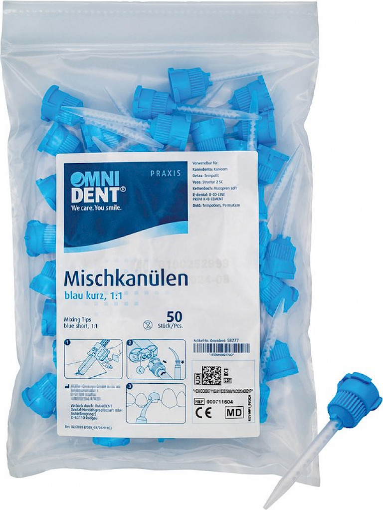 Beutel 50 Mischkanülen blau, kurz 1:1
