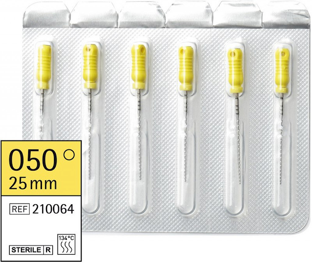 Packung 6 Hedströmfeilen steril, 25 mm, ISO 050