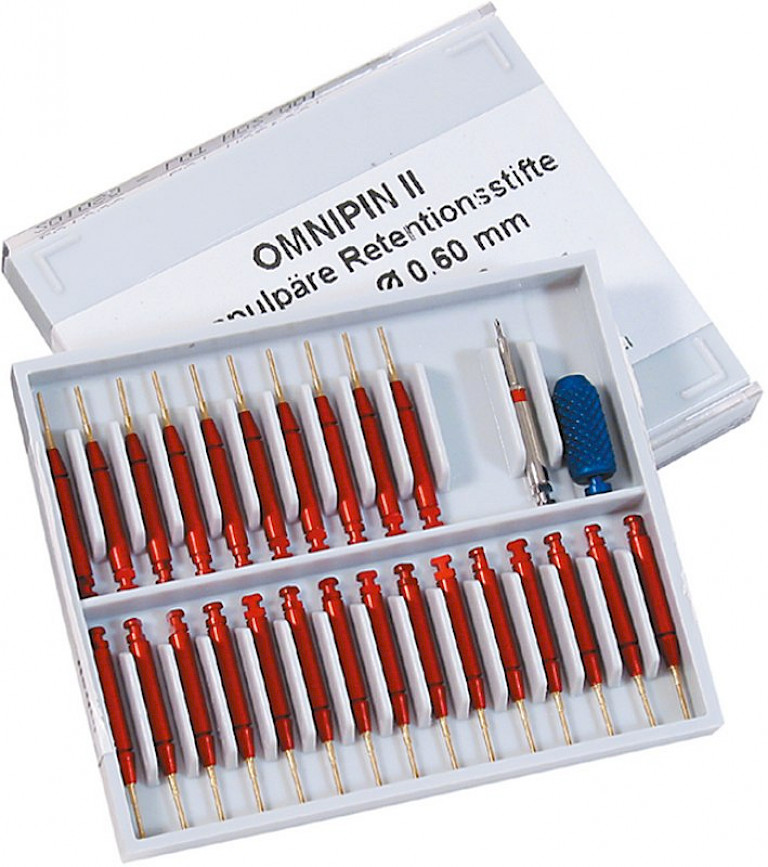 Starter Kit 25 montierte Stifte klein, rot/gold, .021”/0,6 mm, 1 Bohrer, 1 Handgriff