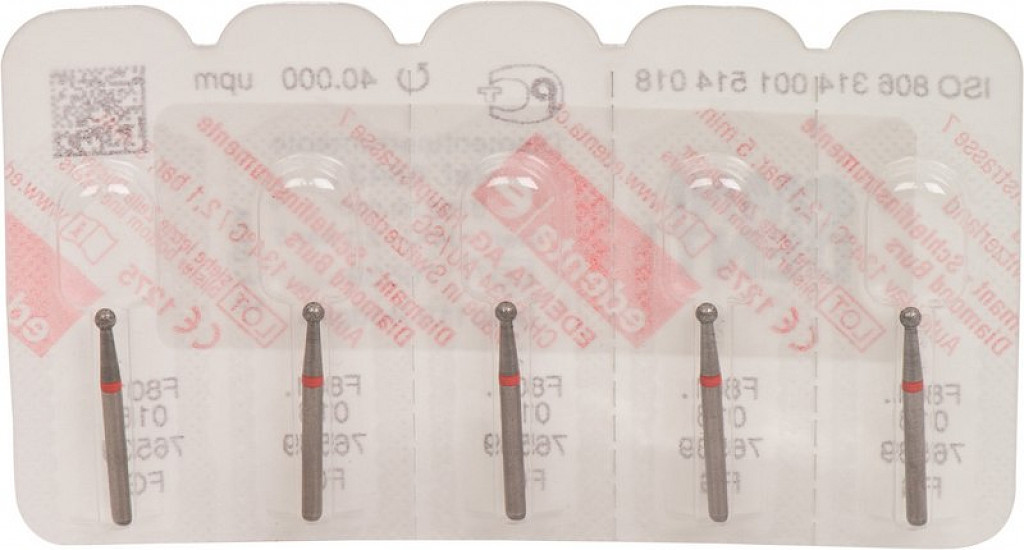 Packung 5 Diamanten rot fein, FG, Figur 001 Kugel, ISO 018