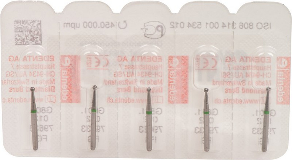 Packung 5 Diamanten grün grob, FG, Figur 001 Kugel, ISO 012