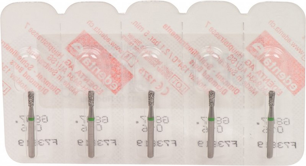 Packung 5 Diamanten grün grob, FG, Figur 225 umgekehrter Kegel, Kopflänge: 4 mm, ISO 016