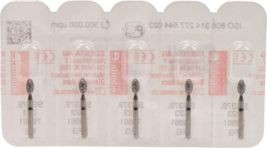 Packung 5 Diamanten schwarz supergrob, FG, Figur 277 Eiform, Kopflänge: 4,5 mm, ISO 023
