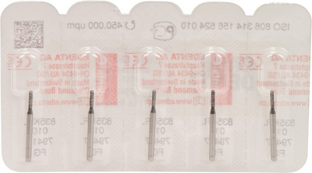 Packung 5 Diamanten Standard, FG, Figur 156 Zylinder Kante rund, Kopflänge: 4 mm, ISO 010