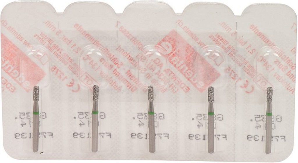 Packung 5 Diamanten grün grob, FG, Figur 108 Zylinder flach, Kopflänge: 4 mm, ISO 014