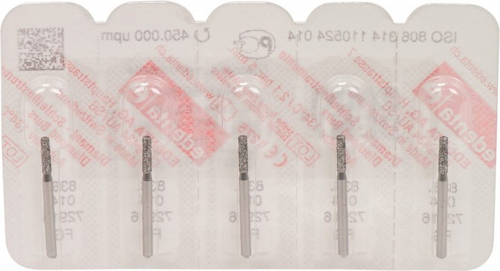 Packung 5 Diamanten Standard, FG, Figur 110 Zylinder flach, Kopflänge: 6 mm, ISO 014