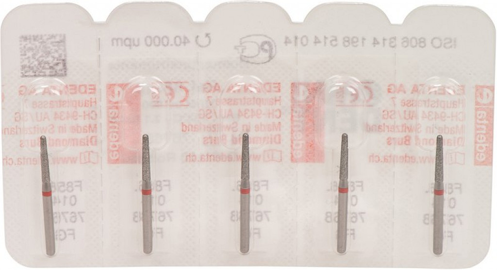 Packung 5 Diamanten rot fein, FG, Figur 198 Konus rund, Kopflänge: 8 mm, ISO 014