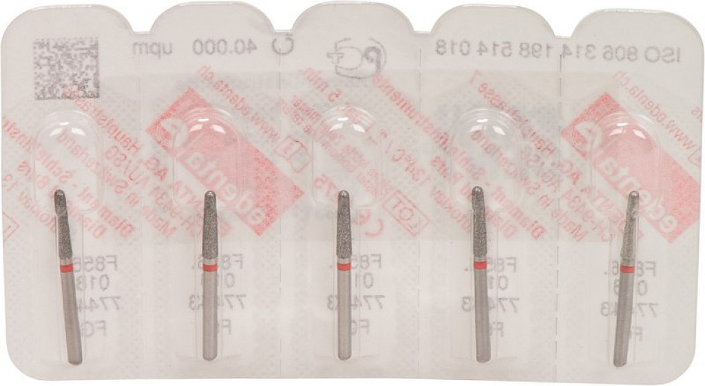 Packung 5 Diamanten rot fein, FG, Figur 198 Konus rund, Kopflänge: 8 mm, ISO 018