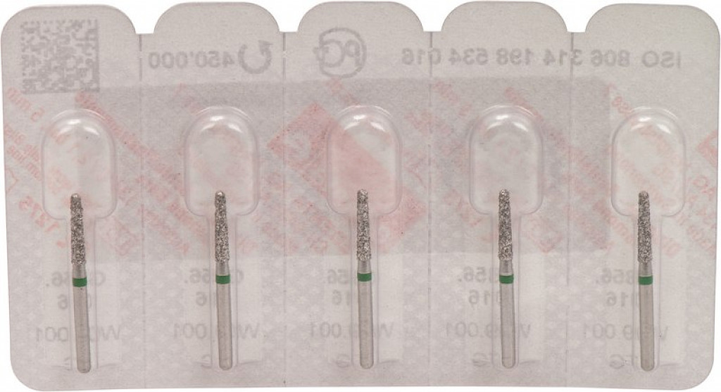 Packung 5 Diamanten grün grob, FG, Figur 198 Konus rund, Kopflänge: 8 mm, ISO 016