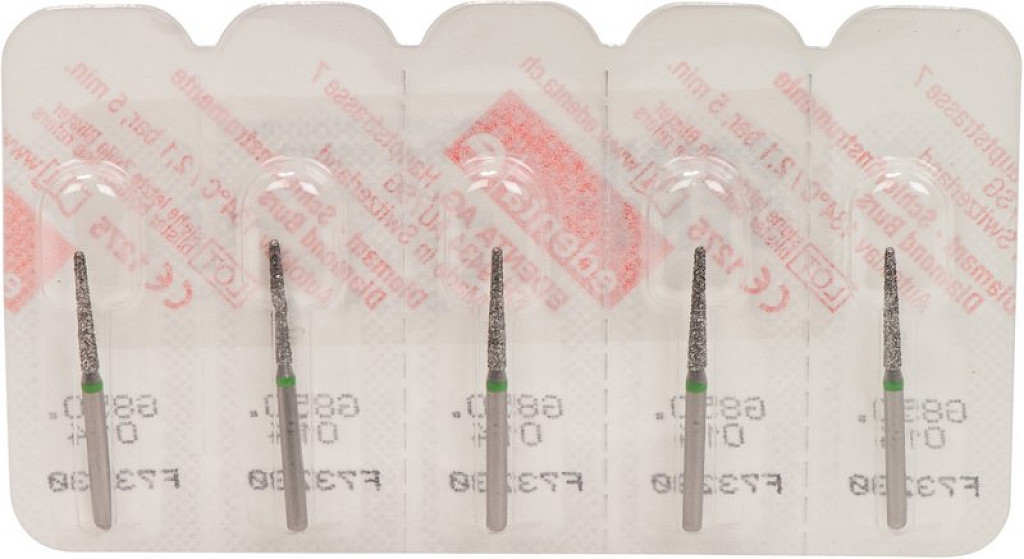 Packung 5 Diamanten grün grob, FG, Figur 199 Konus rund, Kopflänge: 10 mm, ISO 014