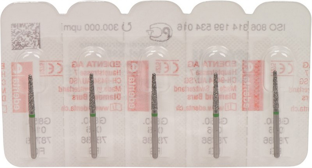 Packung 5 Diamanten grün grob, FG, Figur 199 Konus rund, Kopflänge: 10 mm, ISO 016