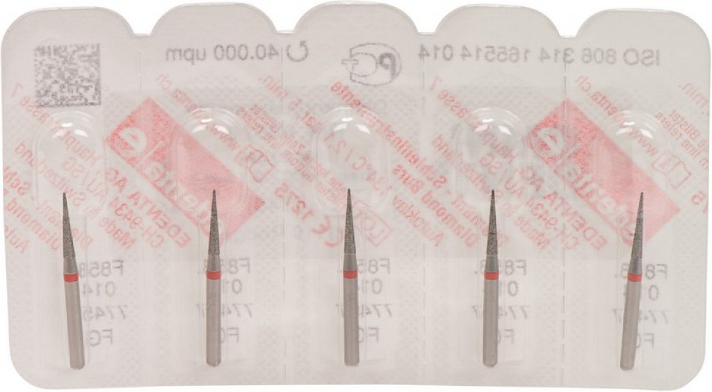 Packung 5 Diamanten rot fein, FG, Figur 165 Konus Spitze, Kopflänge: 8 mm, ISO 014