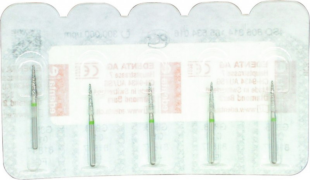 Packung 5 Diamanten grün grob, FG, Figur 165 Konus Spitze, Kopflänge: 8 mm, ISO 016