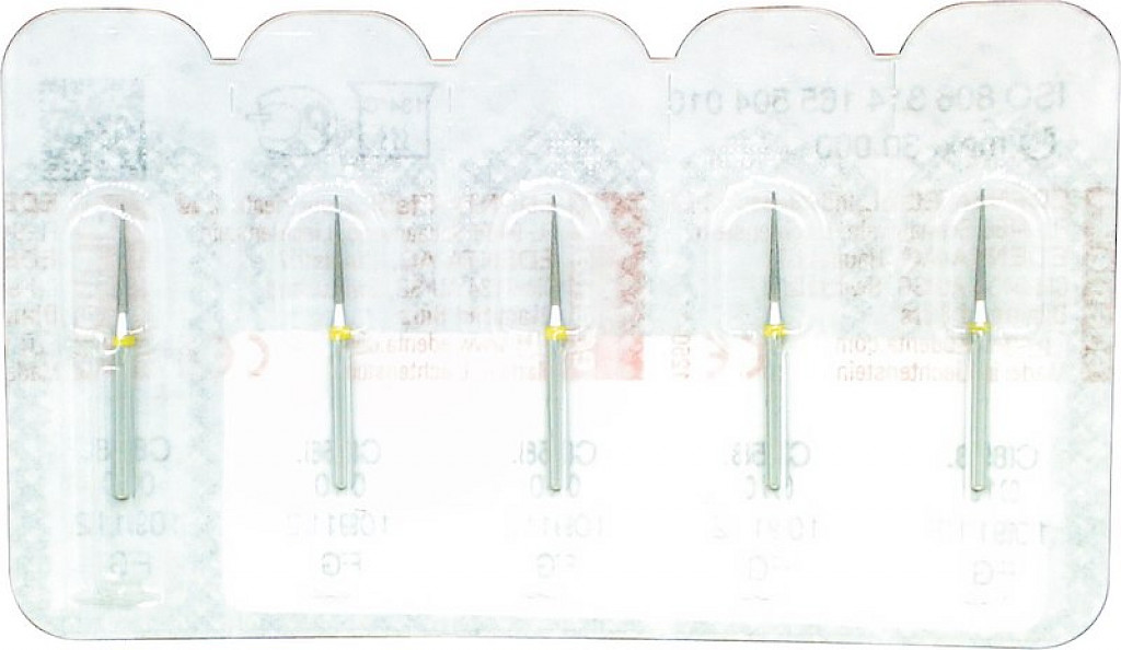 Packung 5 Diamanten gelb superfein, FG, Figur 165 Konus Spitze, Kopflänge: 8 mm, ISO 010