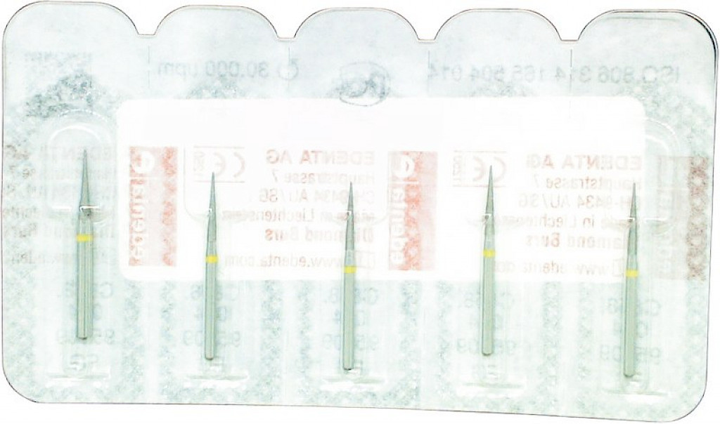 Packung 5 Diamanten gelb superfein, FG, Figur 165 Konus Spitze, Kopflänge: 8 mm, ISO 014