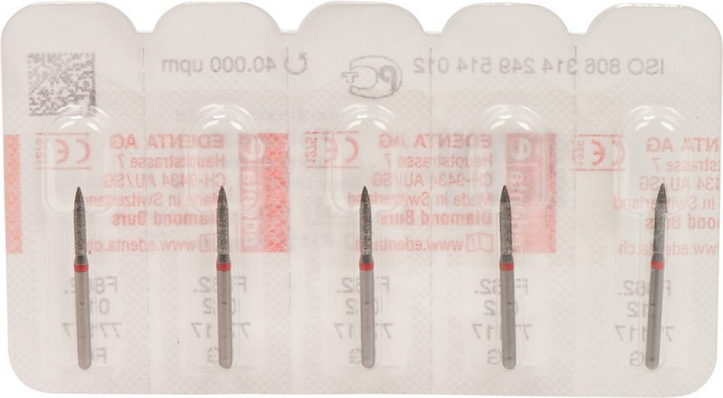 Packung 5 Diamanten rot fein, FG, Figur 249 Flamme, Kopflänge: 8 mm, ISO 012