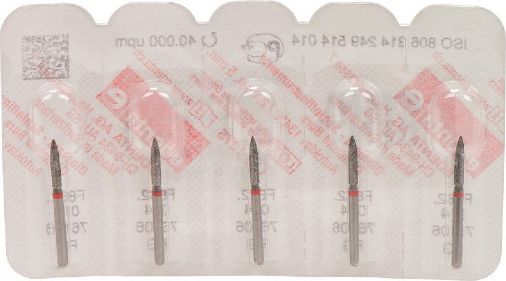 Packung 5 Diamanten rot fein, FG, Figur 249 Flamme, Kopflänge: 8 mm, ISO 014