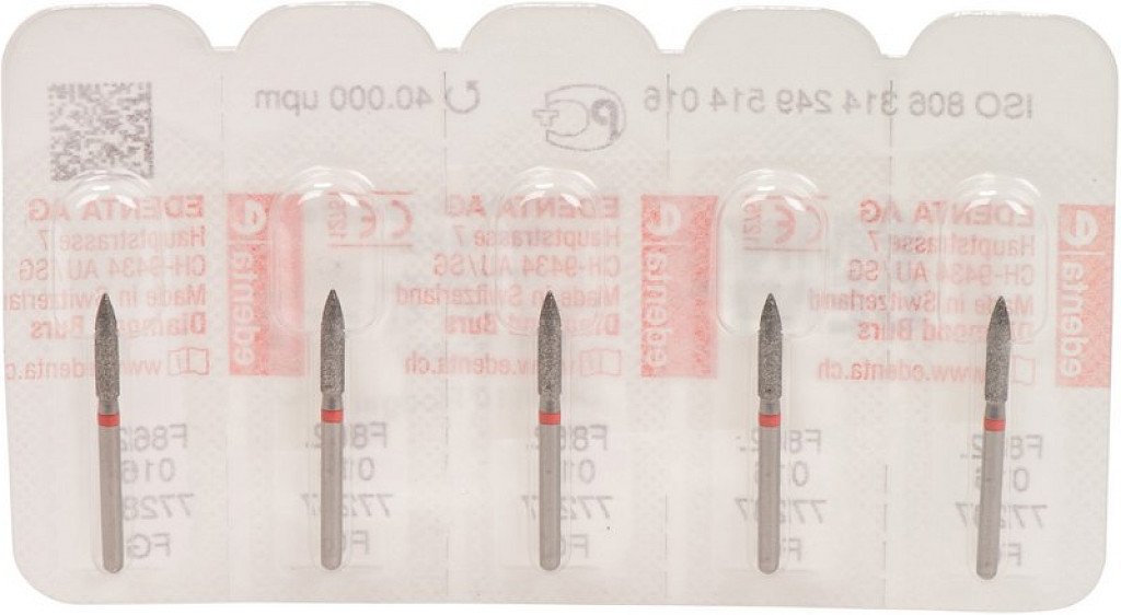 Packung 5 Diamanten rot fein, FG, Figur 249 Flamme, Kopflänge: 8 mm, ISO 016