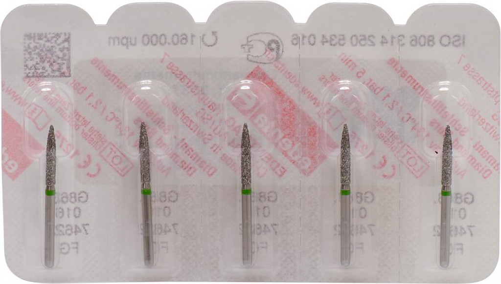 Packung 5 Diamanten grün grob, FG, Figur 250 Flamme, Kopflänge: 10 mm, ISO 016