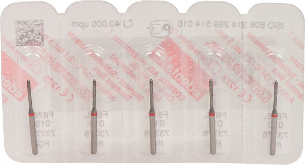 Packung 5 Diamanten rot fein, FG, Figur 289 Torpedo zylindrisch, Kopflänge: 8 mm, ISO 010