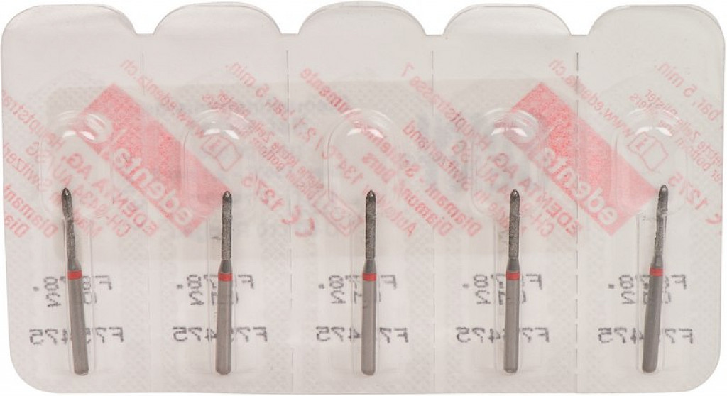 Packung 5 Diamanten rot fein, FG, Figur 289 Torpedo zylindrisch, Kopflänge: 8 mm, ISO 012