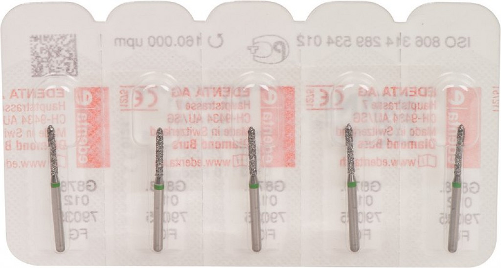 Packung 5 Diamanten grün grob, FG, Figur 289 Torpedo zylindrisch, Kopflänge: 8 mm, ISO 012