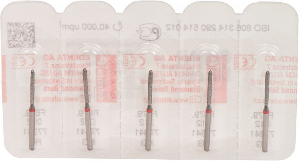 Packung 5 Diamanten rot fein, FG, Figur 290 Torpedo zylindrisch, Kopflänge: 10 mm, ISO 012