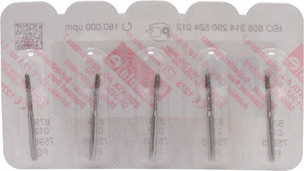 Packung 5 Diamanten Standard, FG, Figur 290 Torpedo zylindrisch, Kopflänge: 10 mm, ISO 012