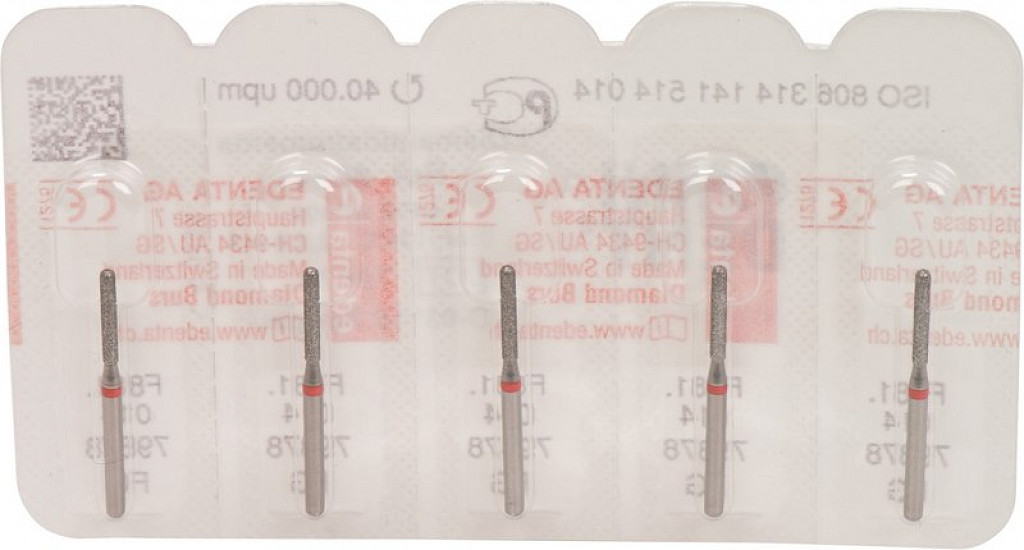 Packung 5 Diamanten rot fein, FG, Figur 141 Zylinder rund, Kopflänge: 8 mm, ISO 014