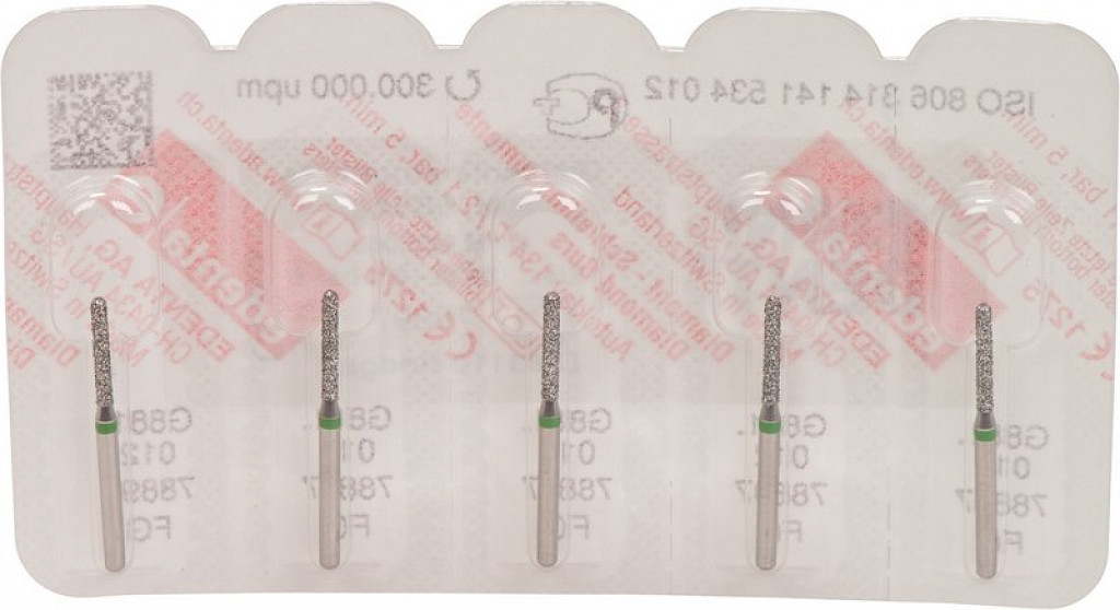 Packung 5 Diamanten grün grob, FG, Figur 141 Zylinder rund, Kopflänge: 8 mm, ISO 012