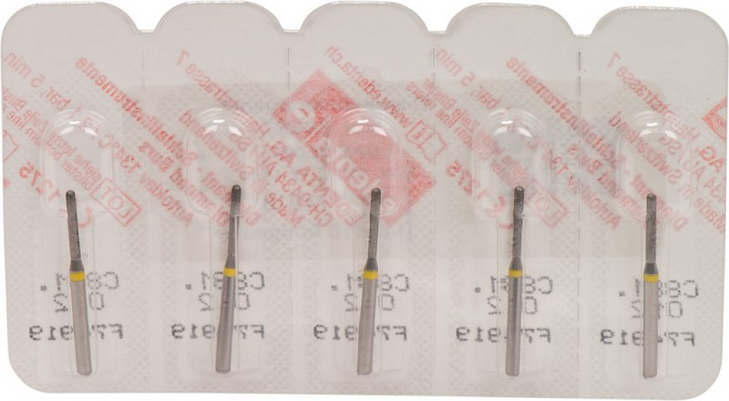 Packung 5 Diamanten gelb superfein, FG, Figur 141 Zylinder rund, Kopflänge: 8 mm, ISO 012