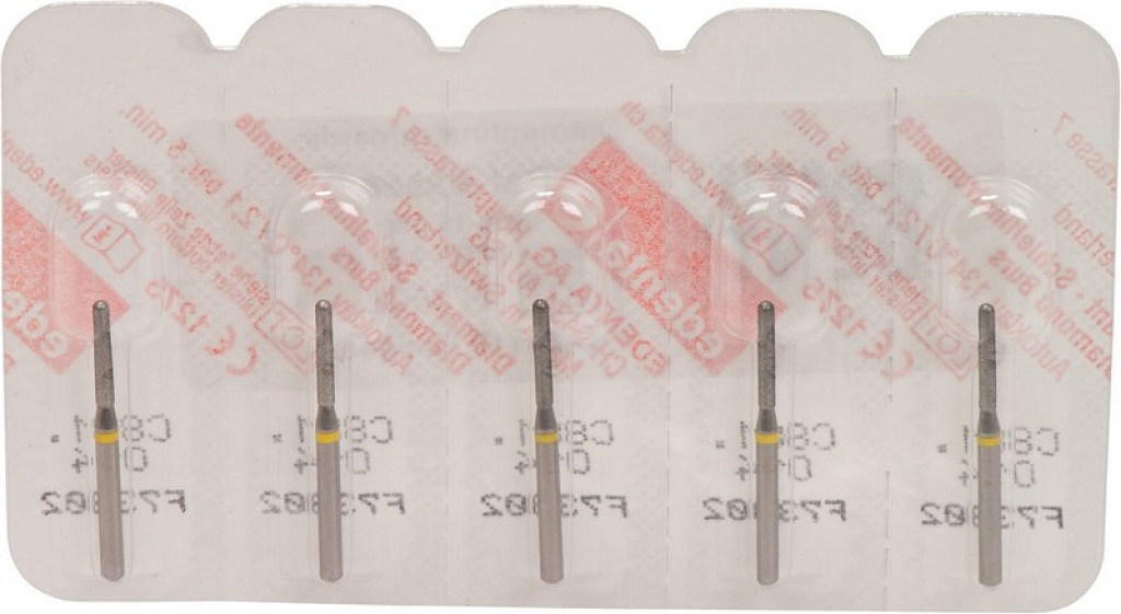 Packung 5 Diamanten gelb superfein, FG, Figur 141 Zylinder rund, Kopflänge: 8 mm, ISO 014