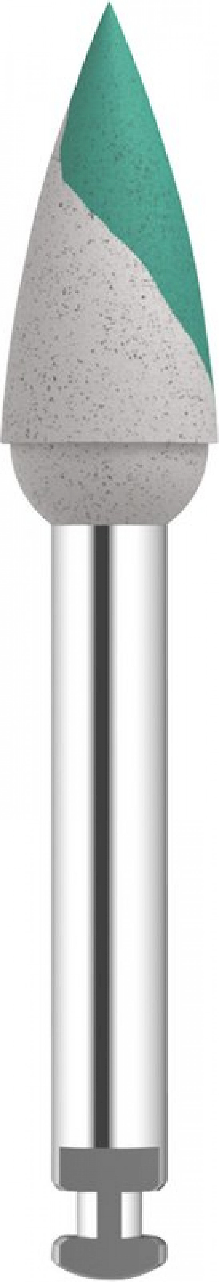 Stück Polierer grün/weiß x-grob, Flamme, RA, Kopflänge: 10 mm, Ø 4,4 mm